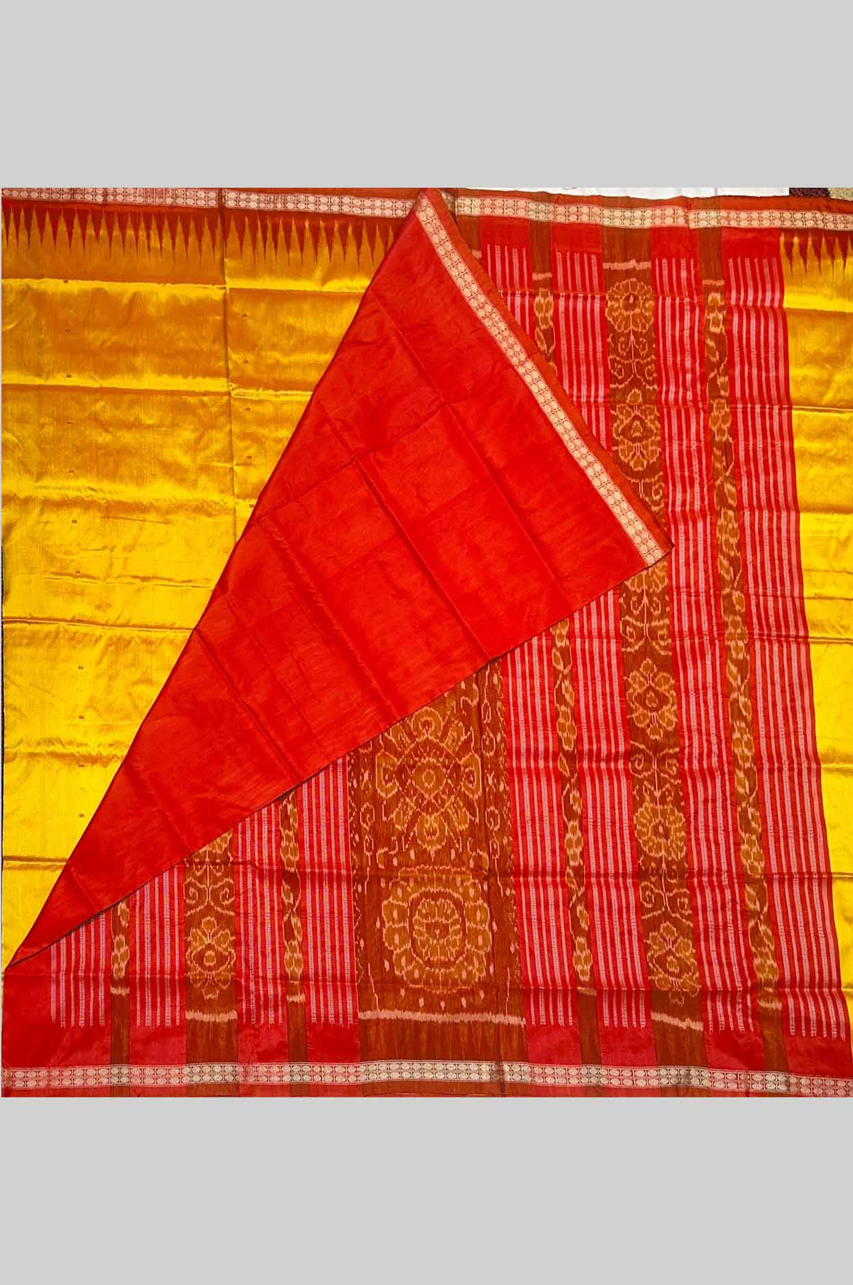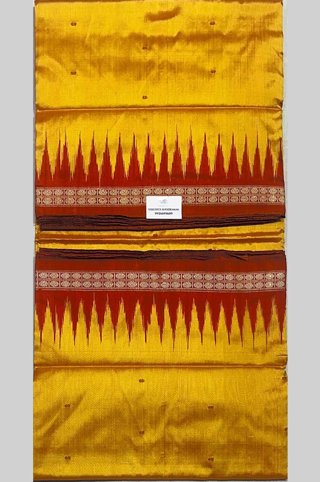 Golden Yellow & Red Mimi Butty Half Silk Sambalpuri Saree with Temple Border