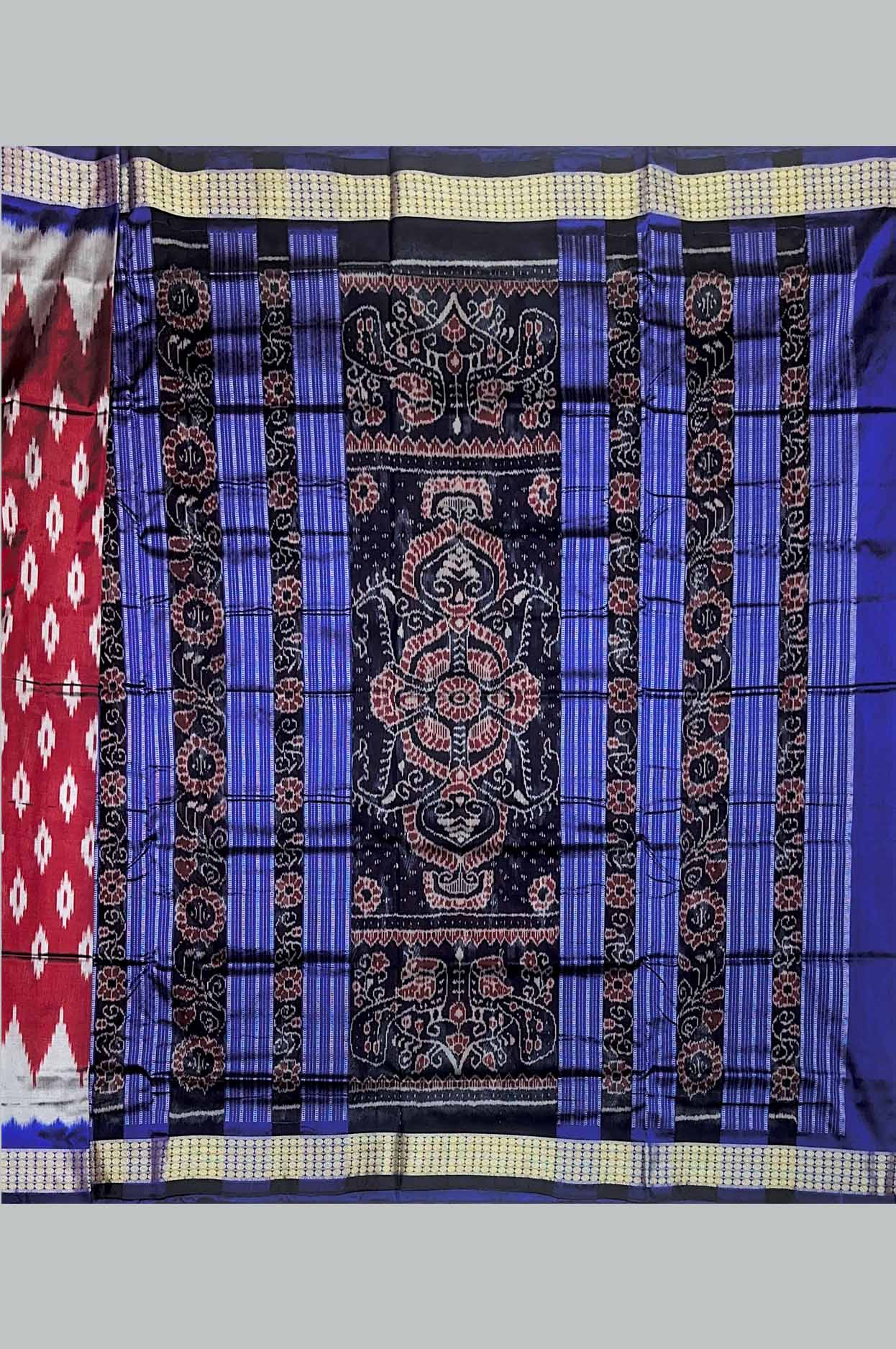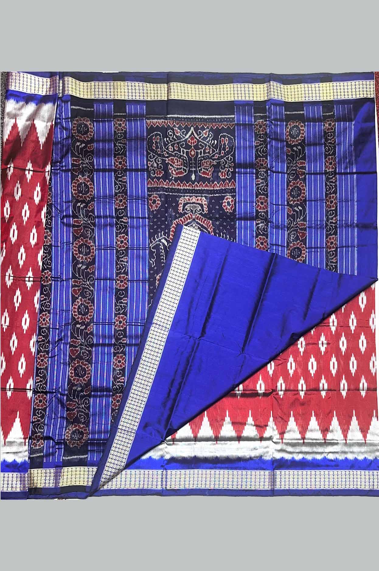 Authentic Half Silk (Mix Patta) Sambalpuri Saree in Deep Red & Royal Blue