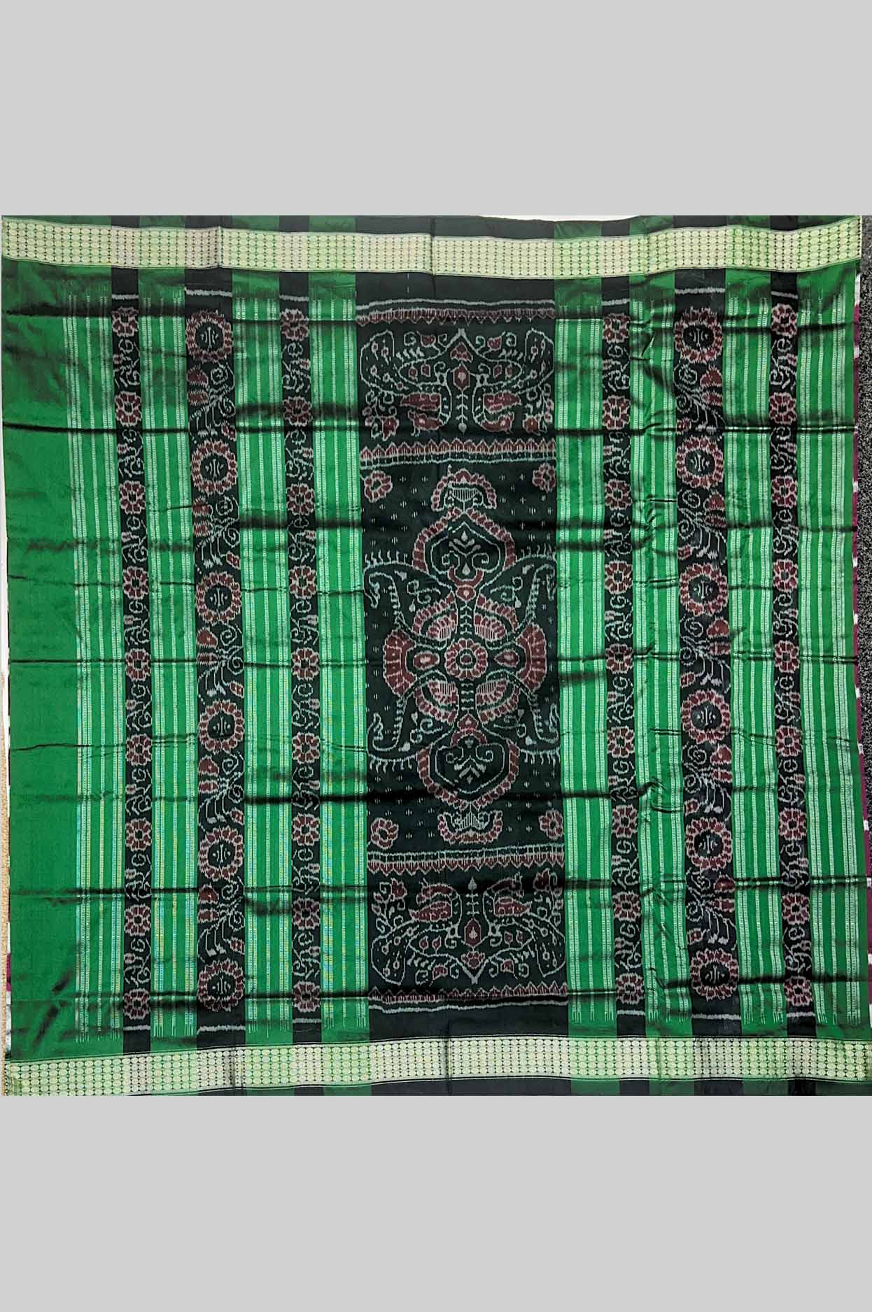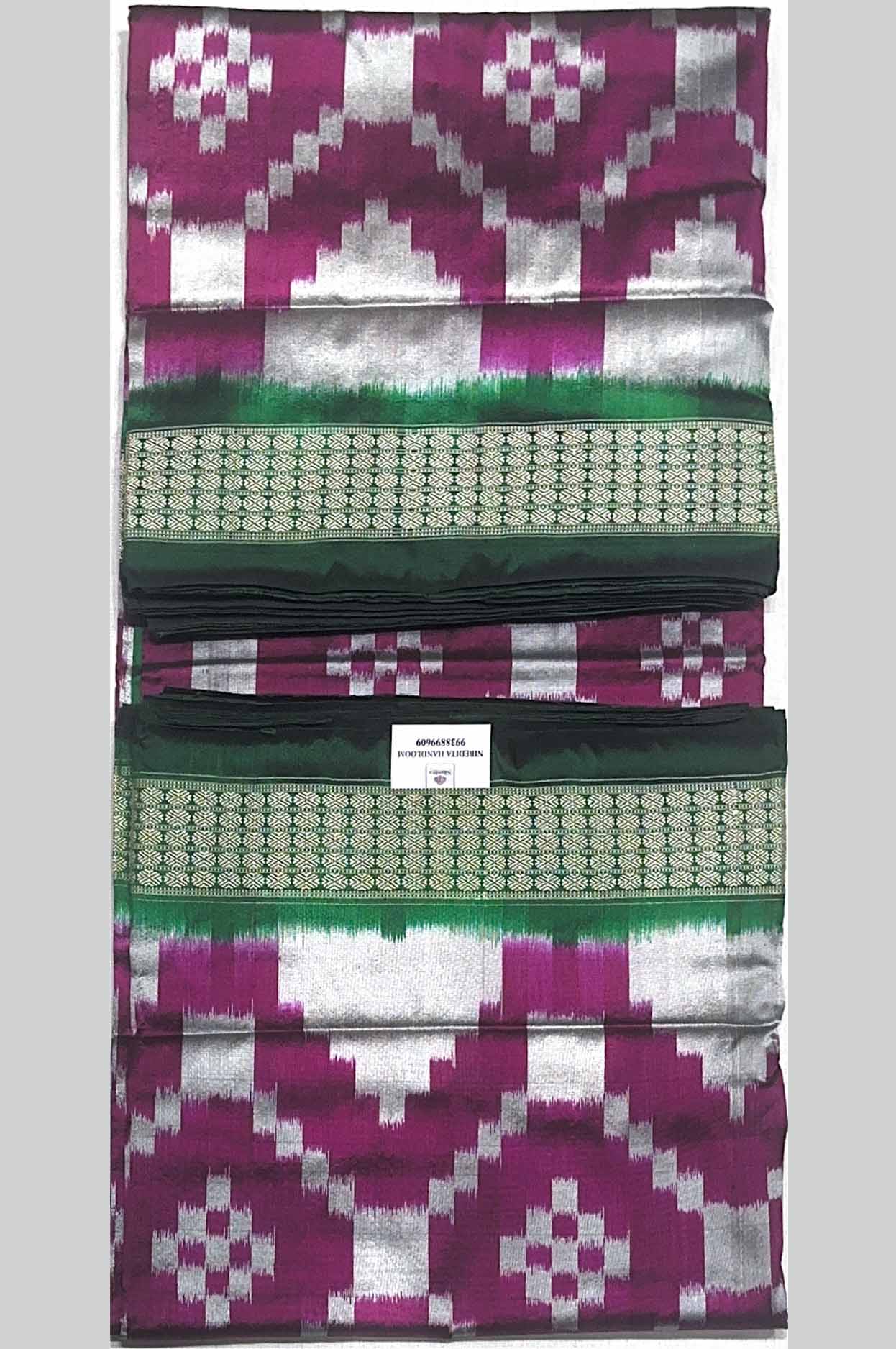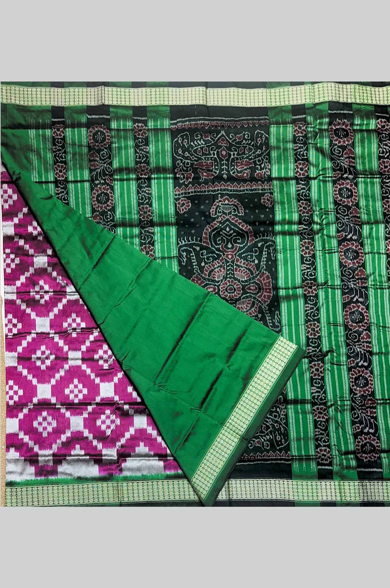Magenta & Green Half Silk (Mix Patta) Sambalpuri Saree with Diamond Ikat Design