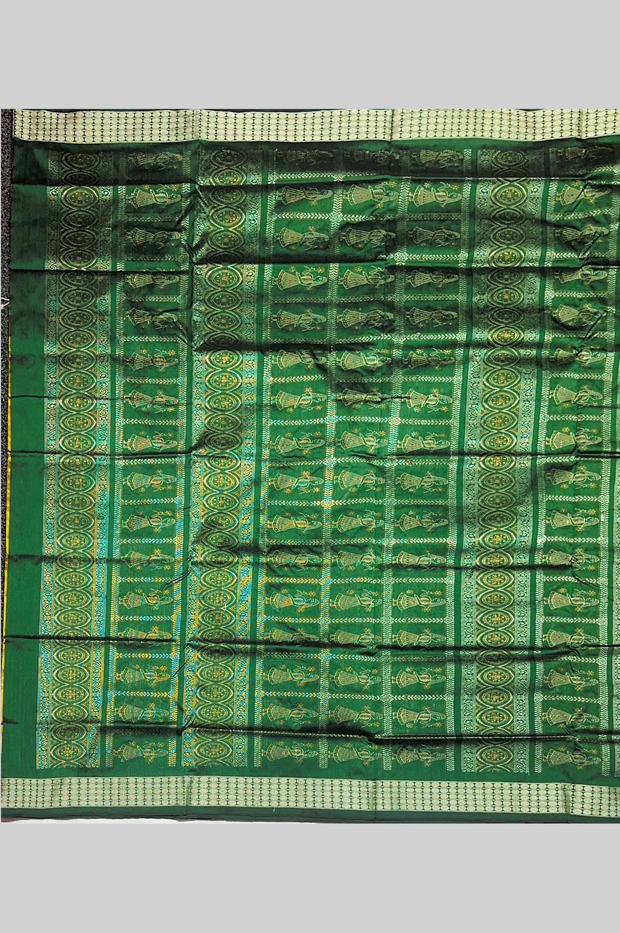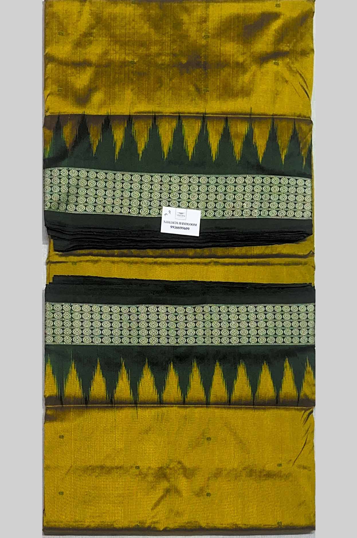 Mustard Yellow & Deep Green Mimi Butty Half Silk Sambalpuri Saree