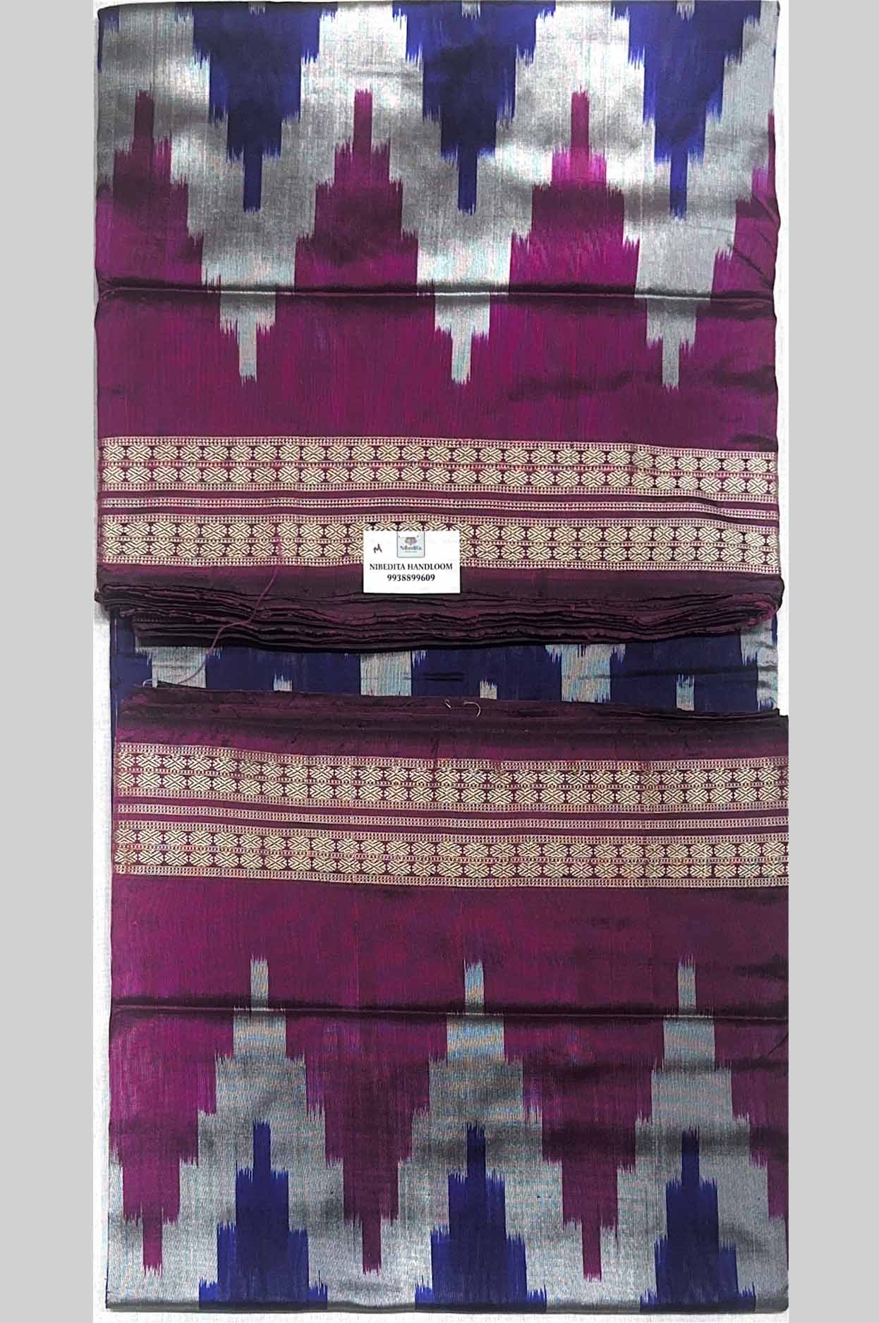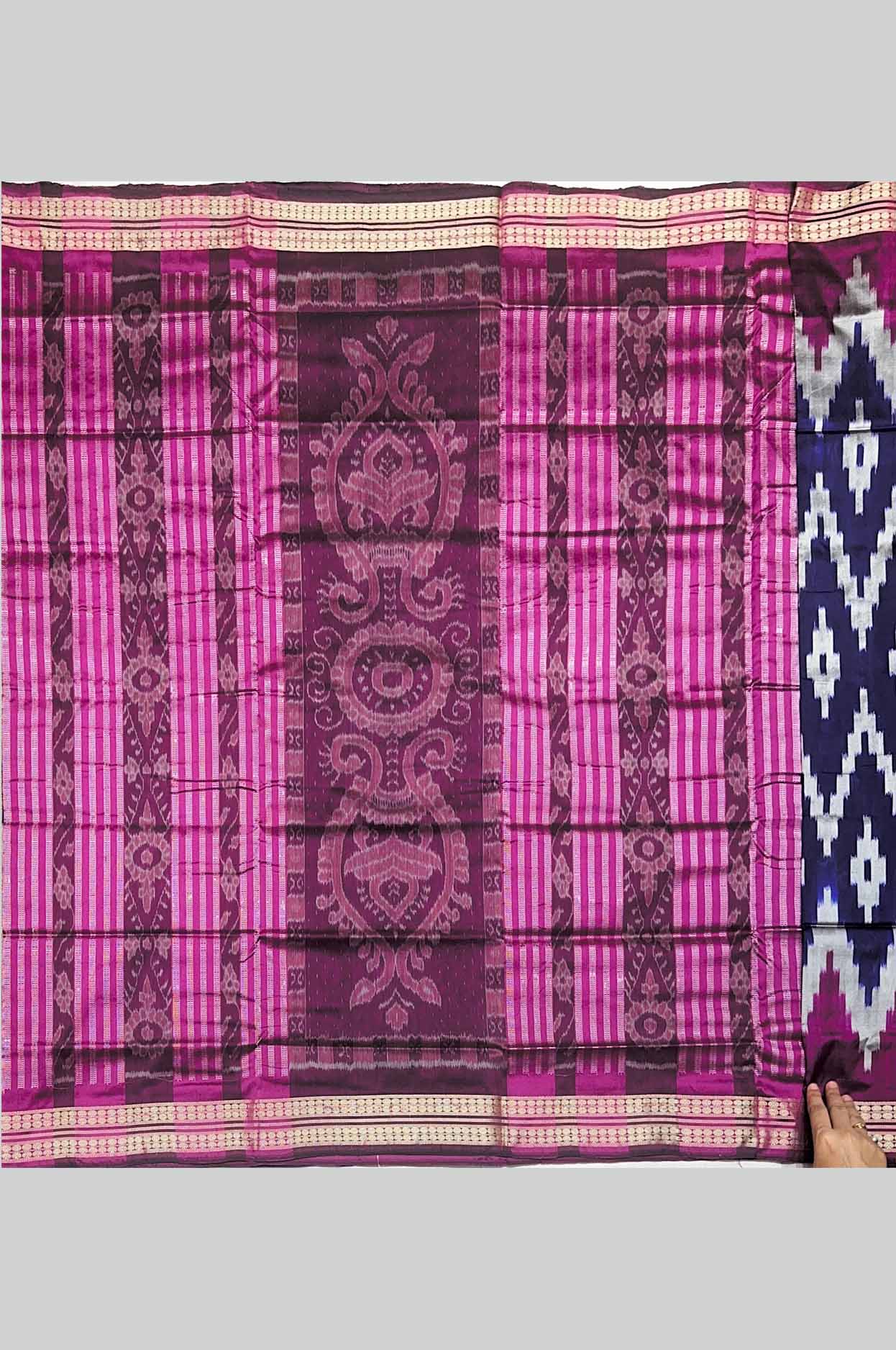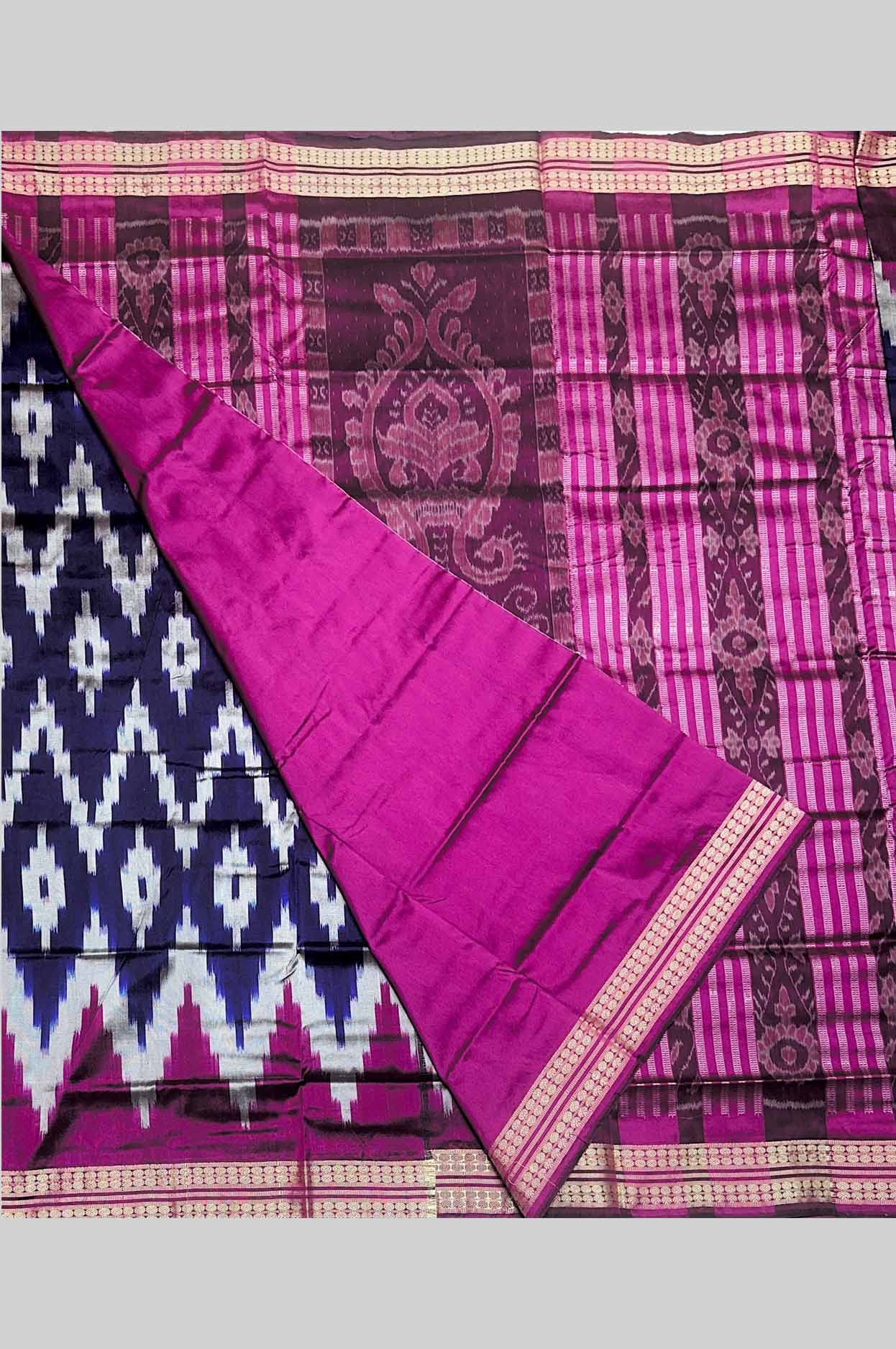 Royal Blue & Magenta Half Silk (Mix Patta) Sambalpuri Saree with Temple Border