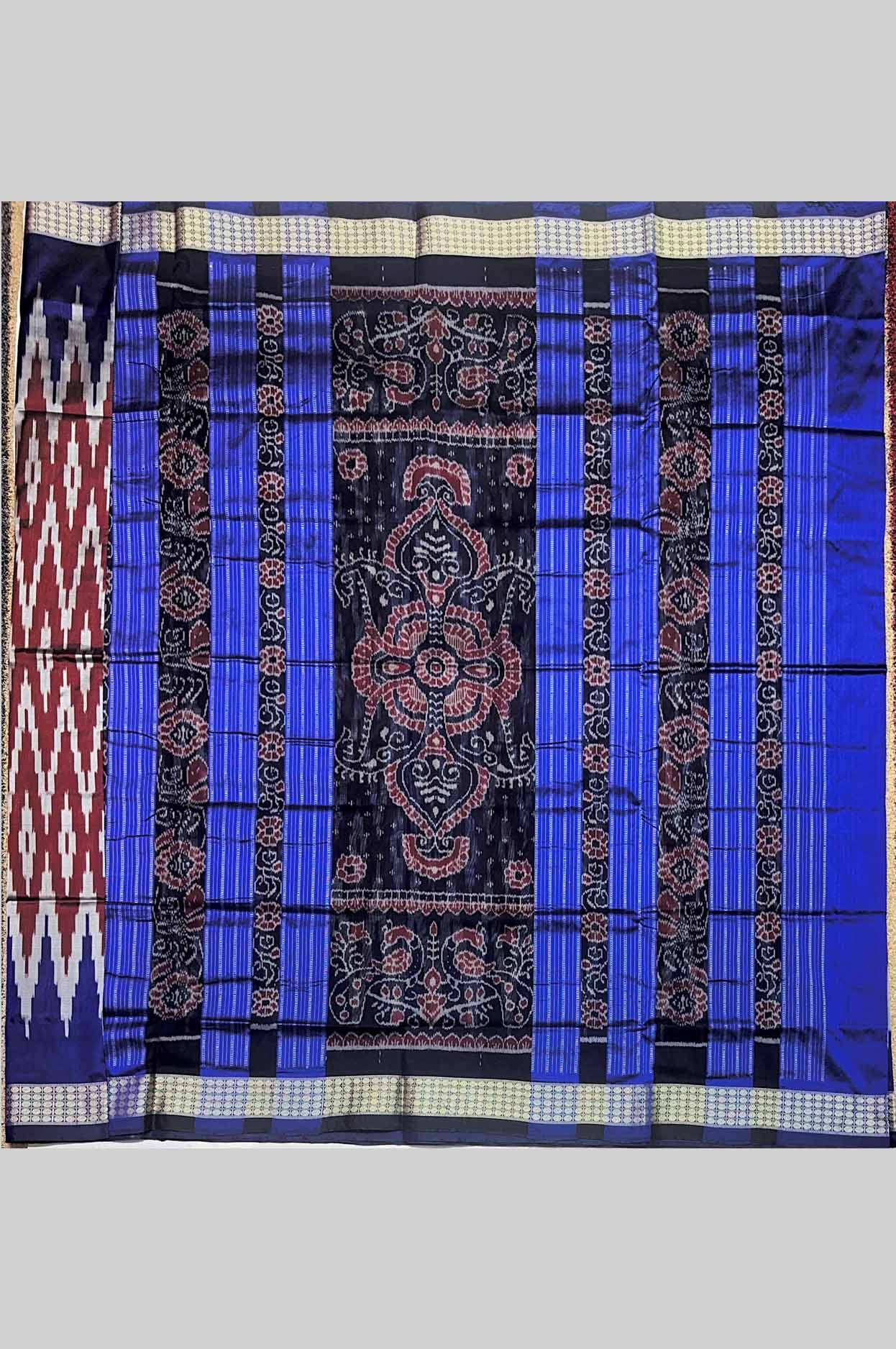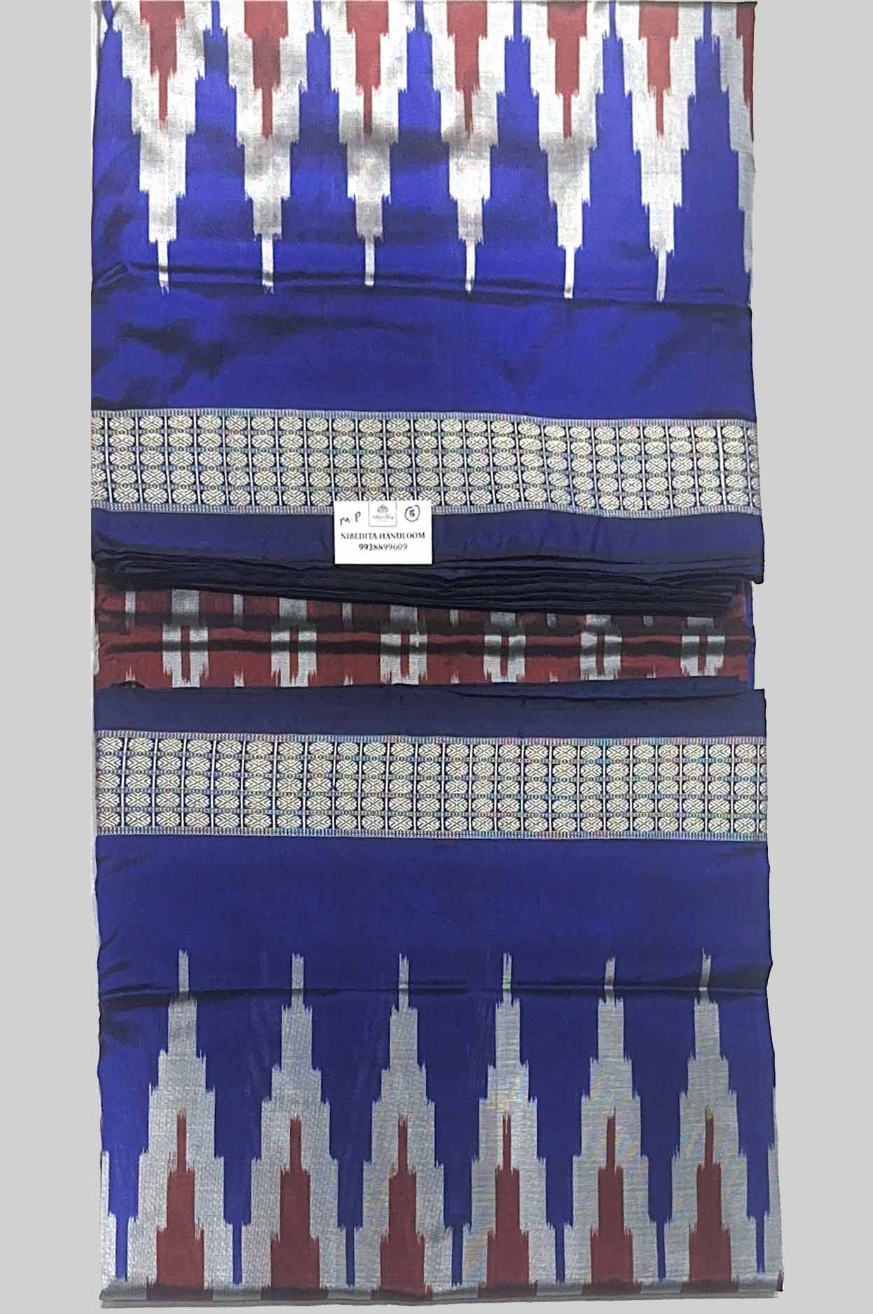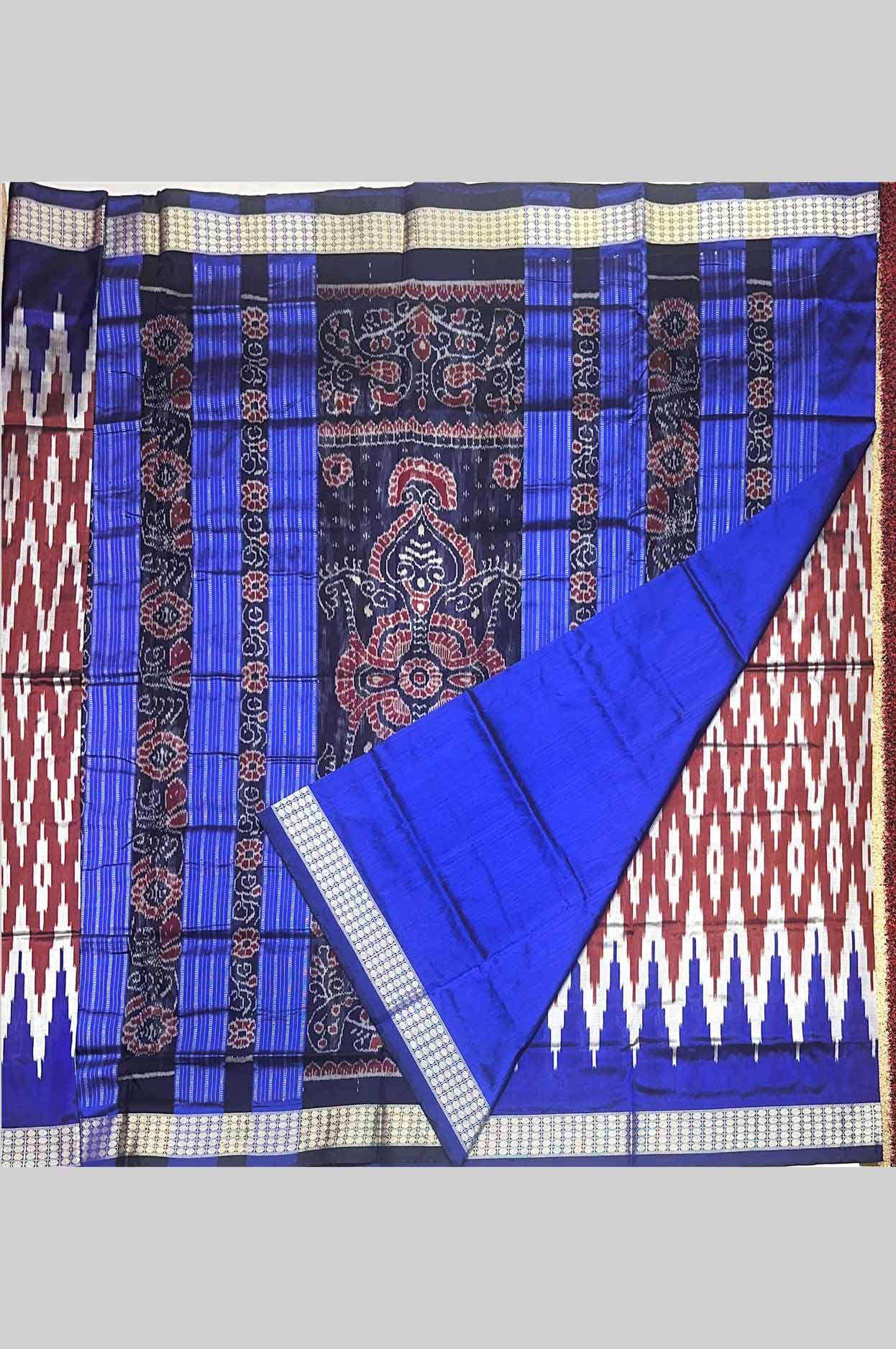Rust Red & Royal Blue Half Silk (Mix Patta) Sambalpuri Saree with Rhythmic Ikat