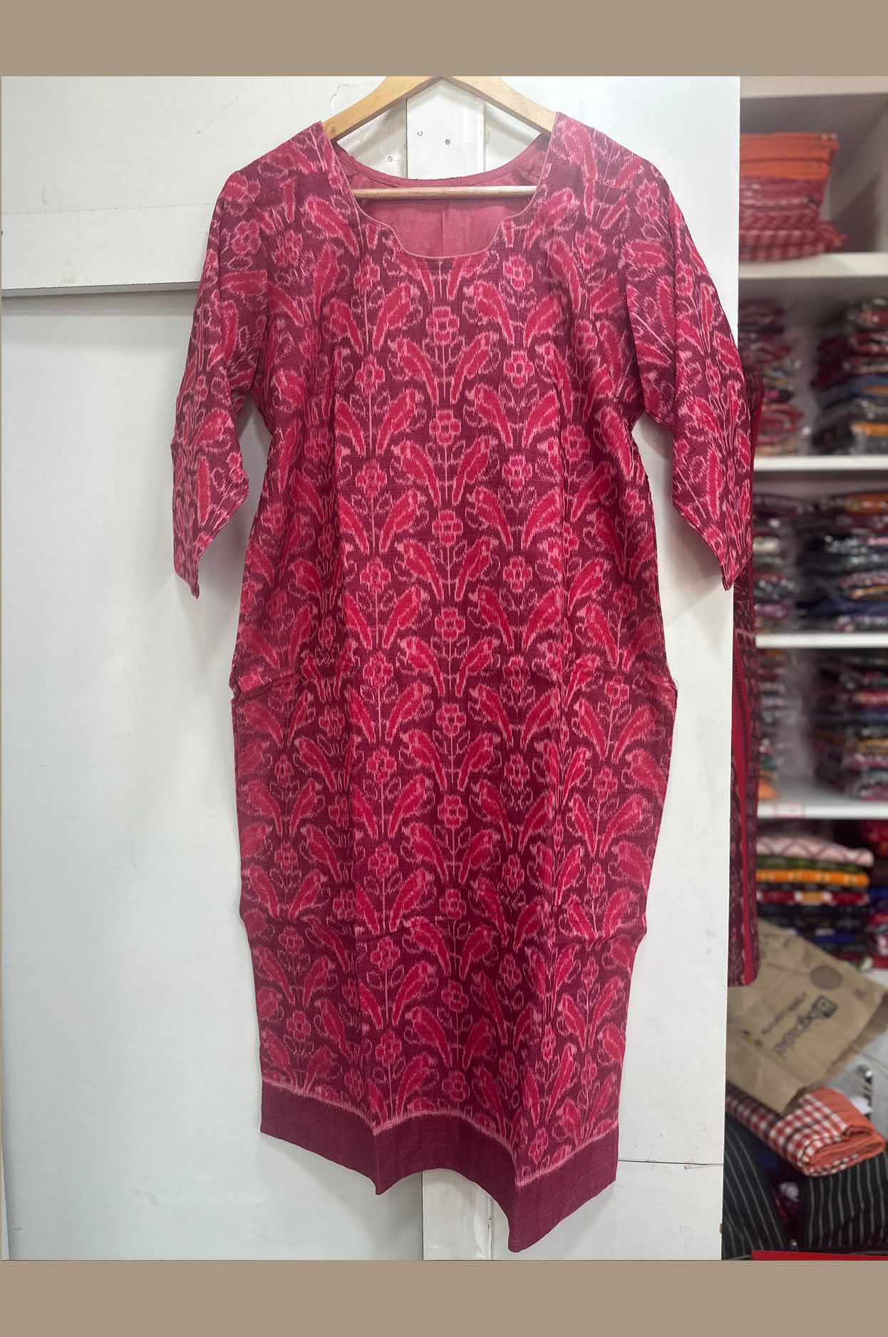 Sambalpuri Double-Sided Handloom Cotton Kurti – Red Traditional Design