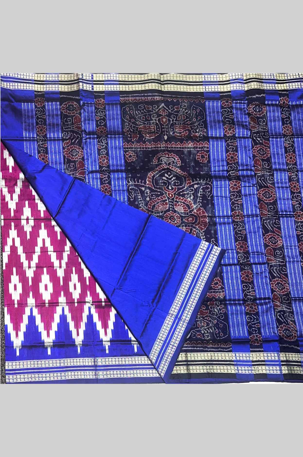 Vibrant Magenta & Royal Blue Half Silk (Mix Patta) Sambalpuri Saree