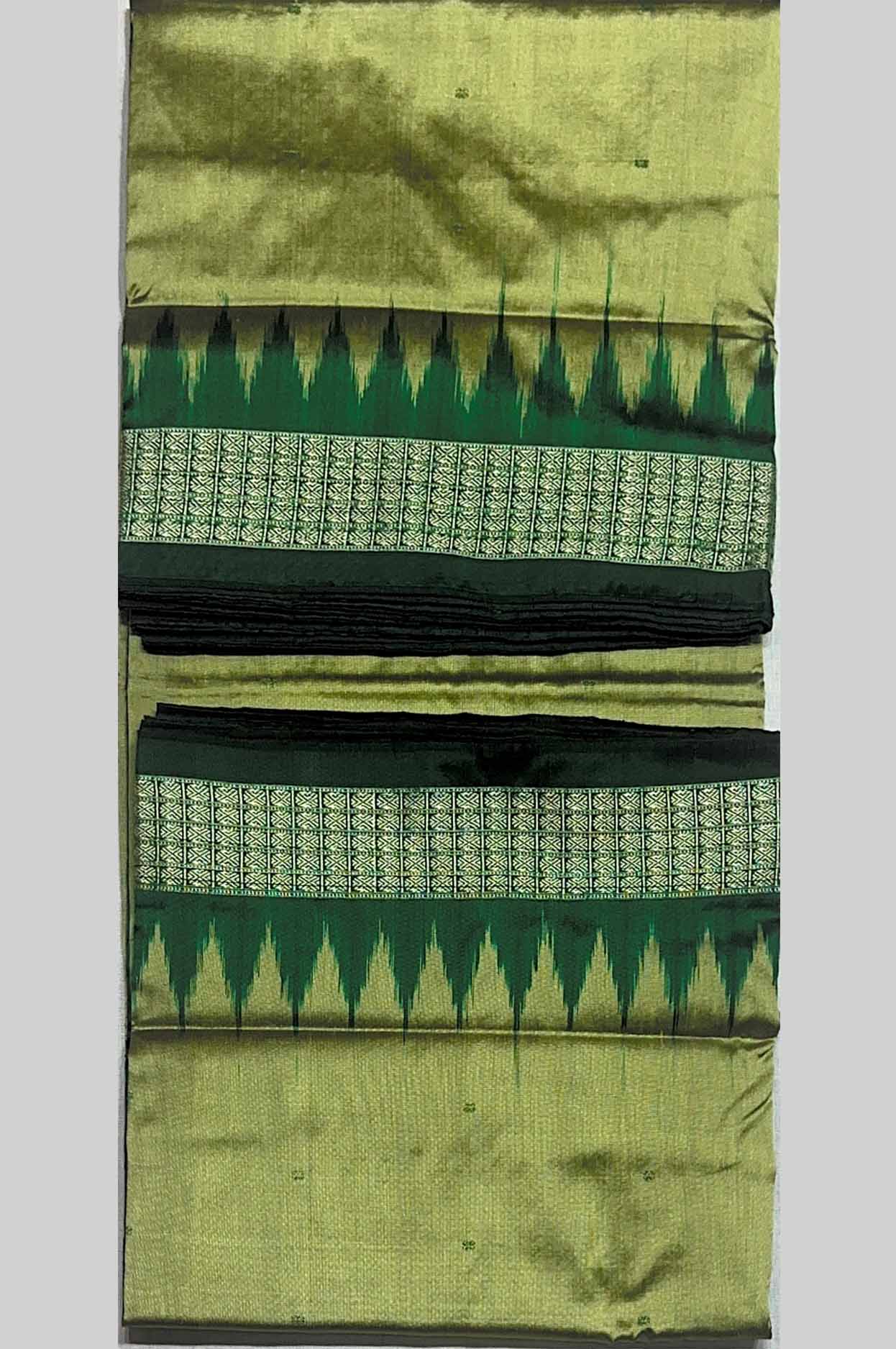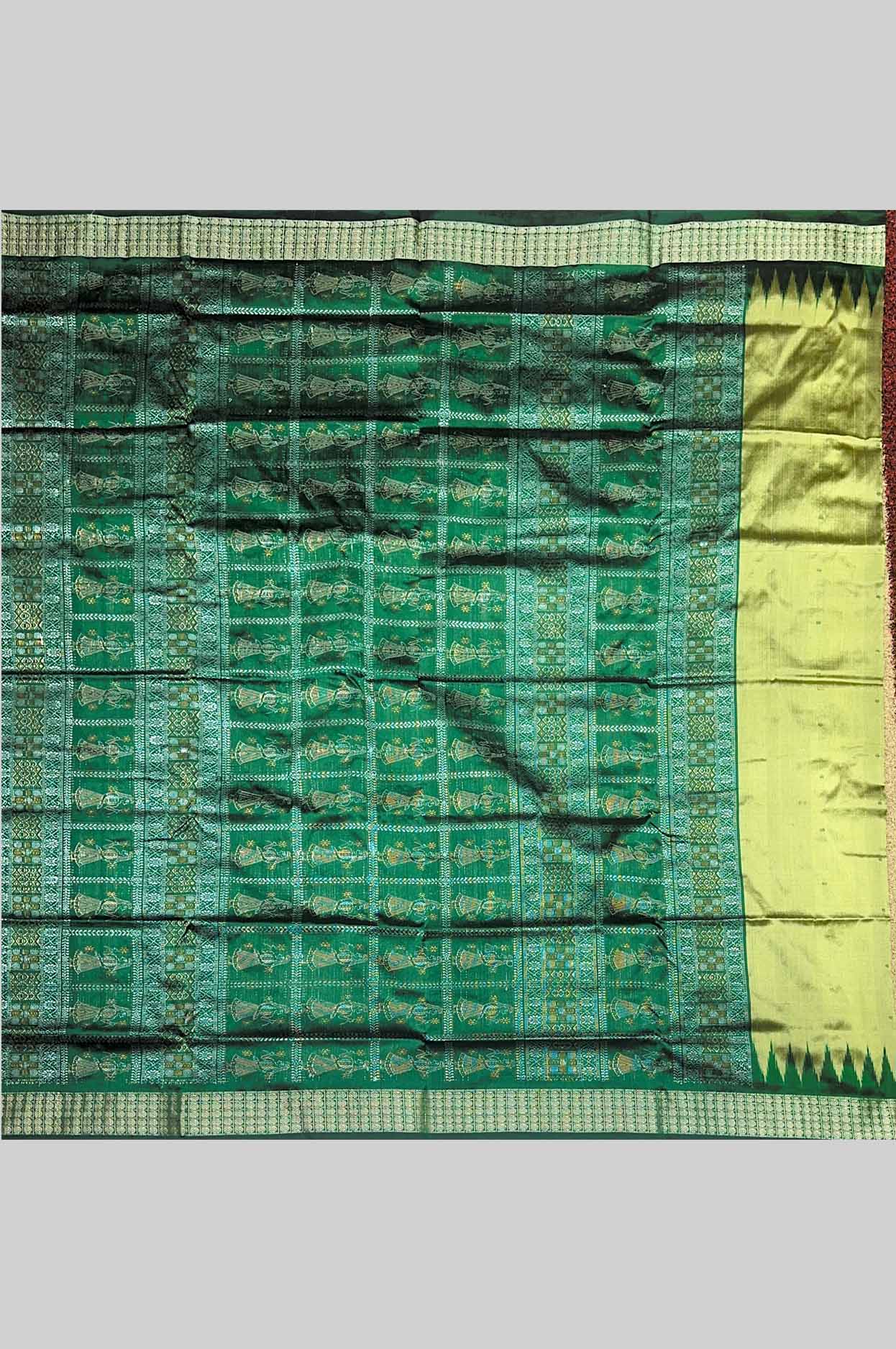 Yellow Gold & Green Mimi Butty Half Silk Sambalpuri Saree with Temple Border